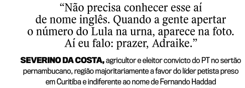 (…). A máquina eleitoral é comandada por meio de bilhetinhos, à la Jânio Quadros, só que de dentro da cadeia, os quais o petista faz chegar às mãos de assessores de altíssima confiança. Integram o time de pombos-correios de Lula o ex-chefe de gabinete Gilberto Carvalho, o advogado Cristiano Zanin, o deputado José Guimarães (PT-CE) e do próprio Haddad, que o tem visitado na condição de advogado. O teor das mensagens é repassado pelos assessores aos políticos aos quais se destinam as determinações.