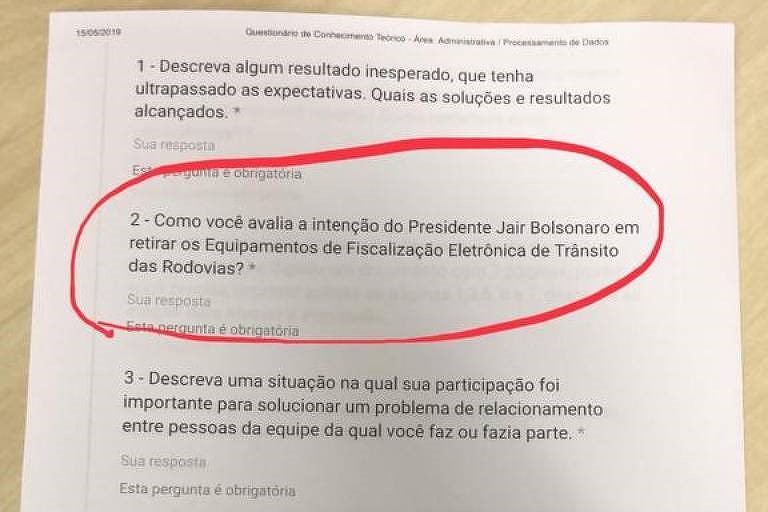 Questionário para contratação em órgão federal pede opinião sobre Bolsonaro