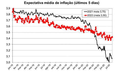 Quem acompanha o assunto há de ter notado um fenômeno curioso para padrões nacionais: a inflação esperada se encontra abaixo da meta estabelecida pelo Conselho Monetário Nacional. Isto é certamente verdade no caso de 2020, devido, é claro, ao efeito da crise sanitária sobre a atividade, mas, de maneira mais importante, surge com nitidez no que diz respeito a 2021 e aparece, de forma ainda incipiente, também em 2022.