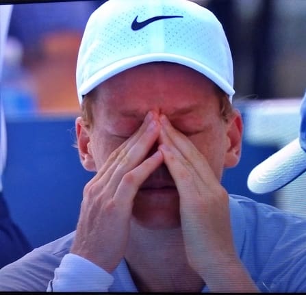 O tenista italiano, nº 1 do ranking da ATP, Jannik Sinner – sim, italiano! –, 1,91 m, abandonou a partida final contra Alcaraz depois de estar perdendo de 5 a 0 no primeiro set.
