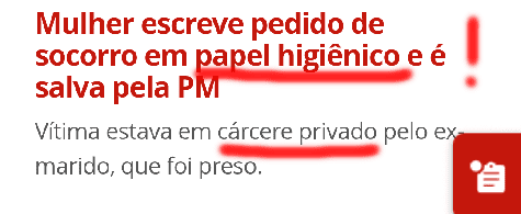 Mais tarde, alguém notou a inconveniência e trocou o titulo na capa: “Mulher pede socorro em bilhete e é salva de cárcere privado em SC”. Na matéria aberta continuou o original.