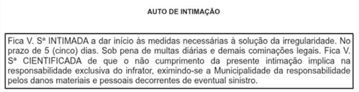 O vice-prefeito, Ricardo Mello Araújo, depois de publicada reportagem na Imprensa, desmentiu o teor da intimação recebida oficialmente pelos moradores, “Ninguém vai ser multado, ninguém vai ter toda essa pressa, porque as pessoas já sofrem com tudo isso que aconteceu”.