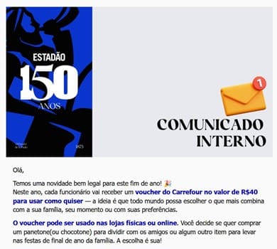 A direção do “Estadãozinho” perdeu o rumo. Vejam o “presente” que ofereceram aos funcionários: